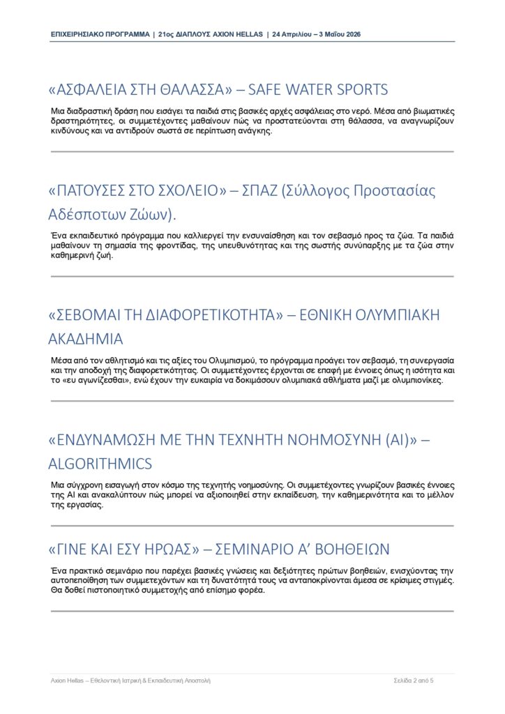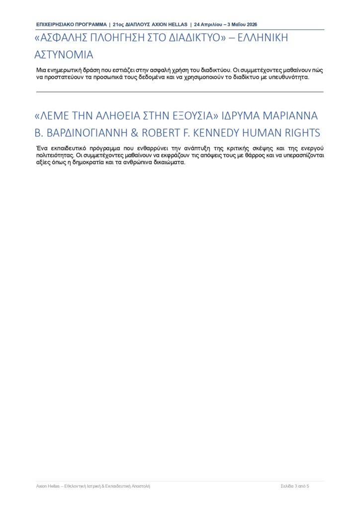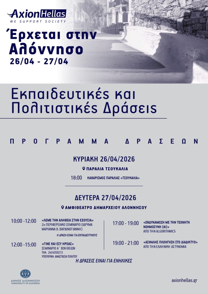 Η παρουσία της AXION HELLAS και των συνεργαζόμενων φορέων στην Αλόννησο δεν αποτελεί απλώς μια σειρά δράσεων, αλλά μια ουσιαστική επένδυση στο μέλλον του τόπου. Μέσα από τη γνώση, την πρόληψη και τη συμμετοχή, ενισχύεται η κοινωνική συνοχή και δημιουργούνται νέες προοπτικές για τη νέα γενιά του νησιού.