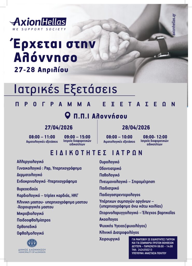 Με ένα ισχυρό μήνυμα κοινωνικής προσφοράς και αλληλεγγύης, ο Δήμος Αλοννήσου καλωσορίζει τον 21ο Διάπλου της AXION HELLAS, μια σημαντική πρωτοβουλία που τελεί υπό την αιγίδα του Δήμου και μετατρέπει το νησί σε κόμβο εκπαίδευσης, πολιτισμού και ιατρικής φροντίδας.