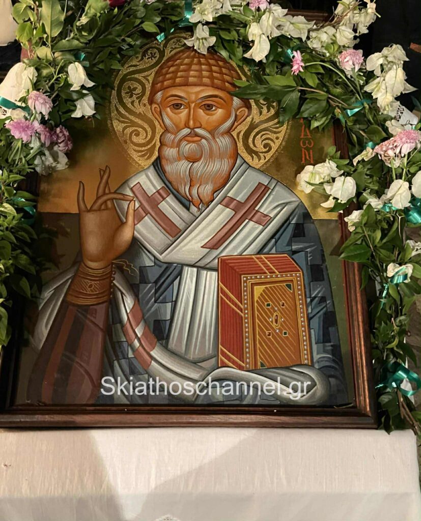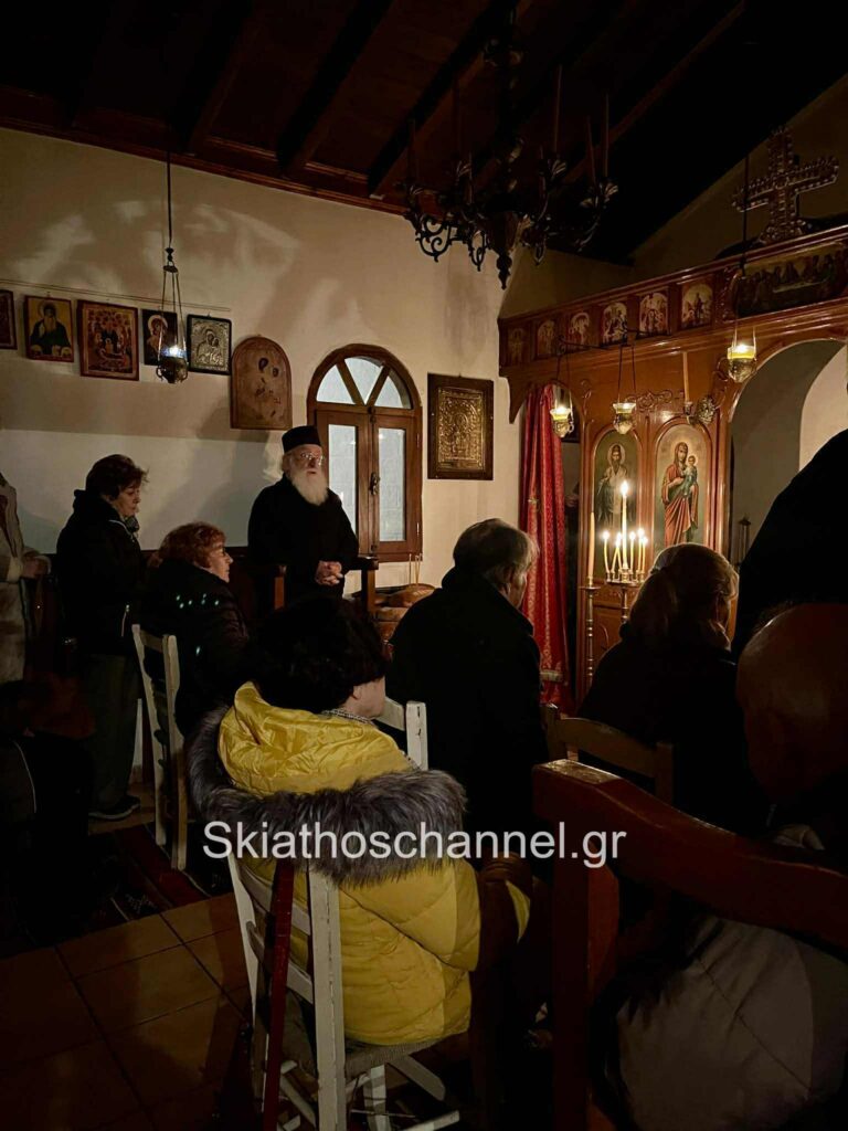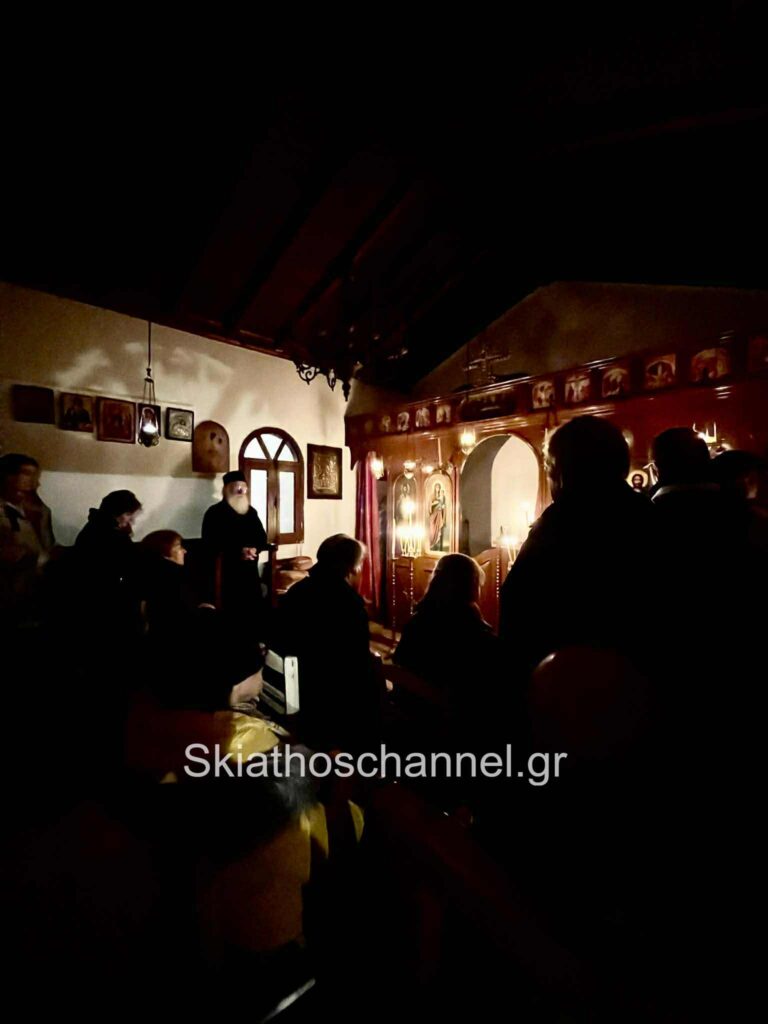Τη νύχτα της 11ης Δεκεμβρίου, με βαθιά θρησκευτική κατάνυξη, πιστοί από τη Σκιάθο συγκεντρώθηκαν στο γραφικό εκκλησάκι του Αγίου Σπυρίδωνα στην περιοχή Καλύβια για την καθιερωμένη ιερά Αγρυπνία προς τιμήν του μεγάλου Θαυματουργού Αγίου.