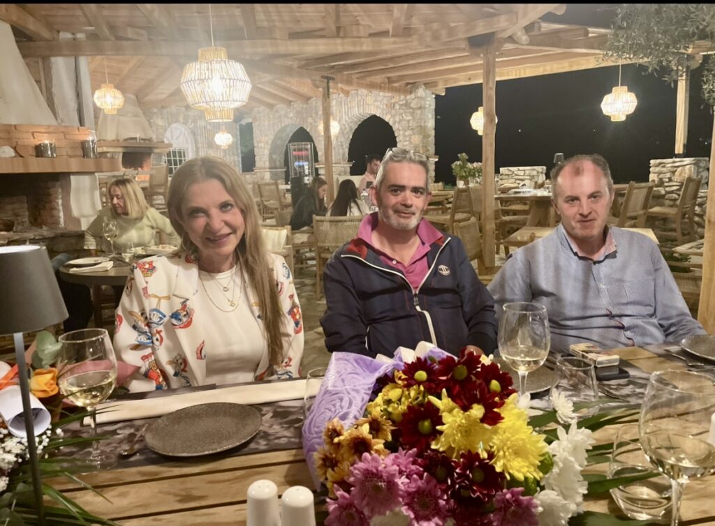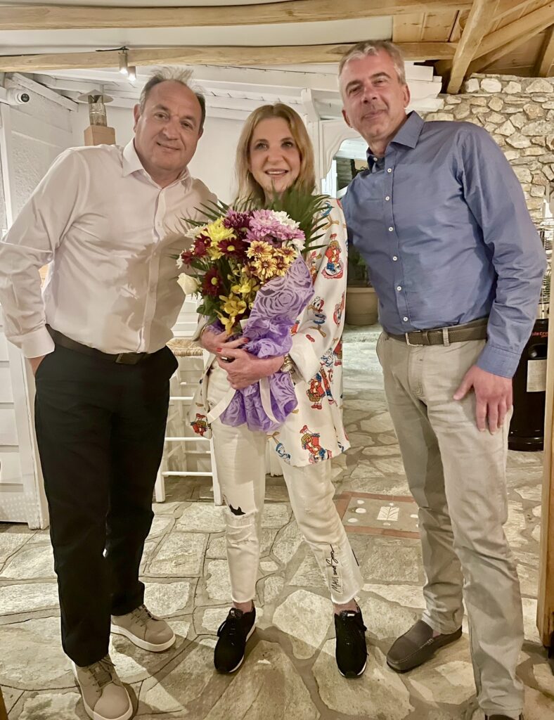 Πανευτυχής η γνωστή designer μόδας και ξενοδοχείων κ.Ρία Δερβένη με την ευχάριστη έκπληξη που τις επιφύλαξαν τα στελέχη &προσωπικό του SKIATHOS PALACE -ALKYON HOTEL στο Carnayo Restaurant στην Αμμουδιά της Σκιάθου με αφορμή τα γενέθλια της.Κοντά της,εδώ και πολλά χρόνια ο σύζυγος της Αρης Δερβένης,που μαζί πορεύονται και δημιουργούν επιχειρήσεις τουρισμού που ο σκοπός τους είναι να παρέχουν υψηλές προδιαγραφές.Το Skiathoschannel.gr εύχεται να τα εκατοστήσει, και να συνεχίζει δυναμικά να δημιουργεί έργα τέχνης(ξενοδοχεία) με σκοπό την ανάδειξη της Ελλάδος.Ο Αρης + Ρία Δερβένη Οι Διευθυντές Παναγιώτης Καλατζής με τον Στέλιο Μανουσάκη