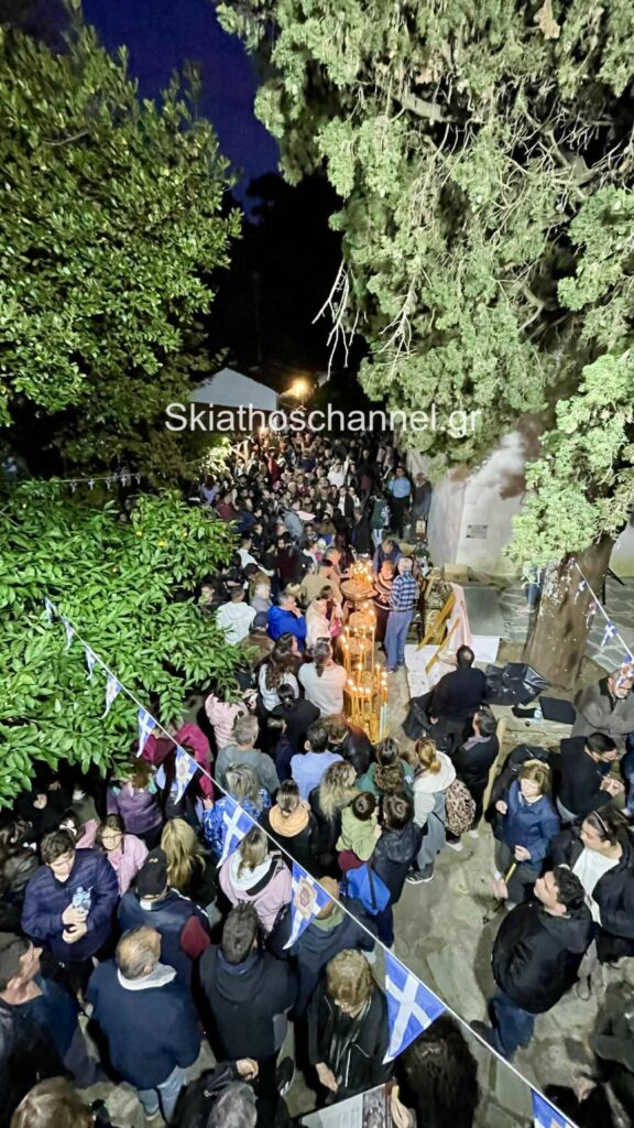 - Η εικόνα βγαίνει από το μοναστήρι (~5:15 π.μ.) και ξεκινά η λιτανεία προς την πόλη της Σκιάθου.